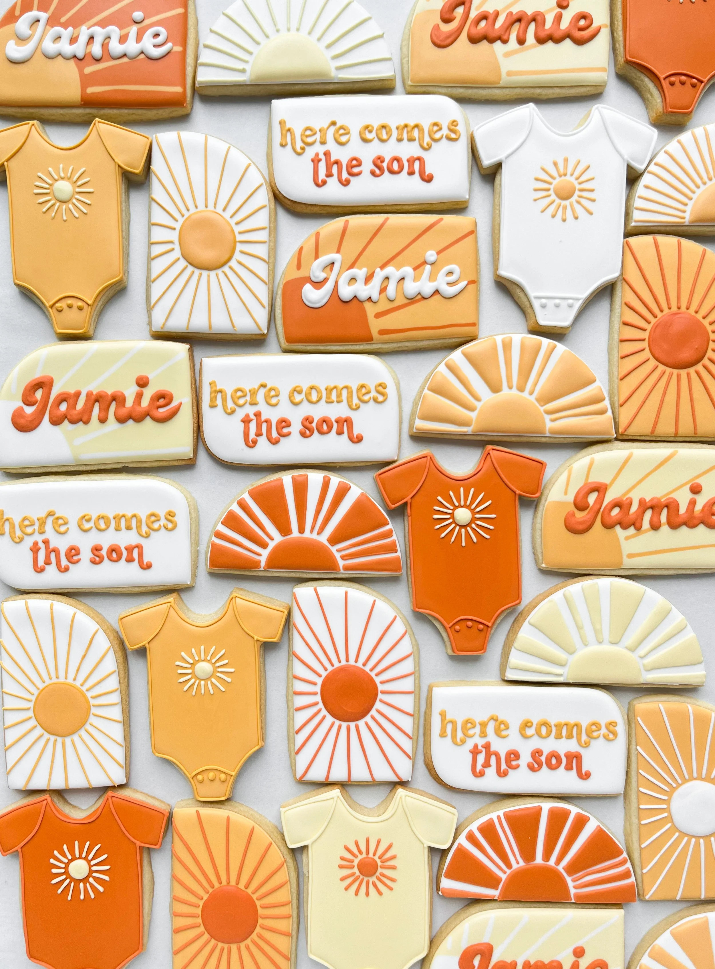 My buttery decorated cookies are $70 per dozen, or $75 individually packaged in cellophane bags sealed with a Whisk Chick sticker on the back.