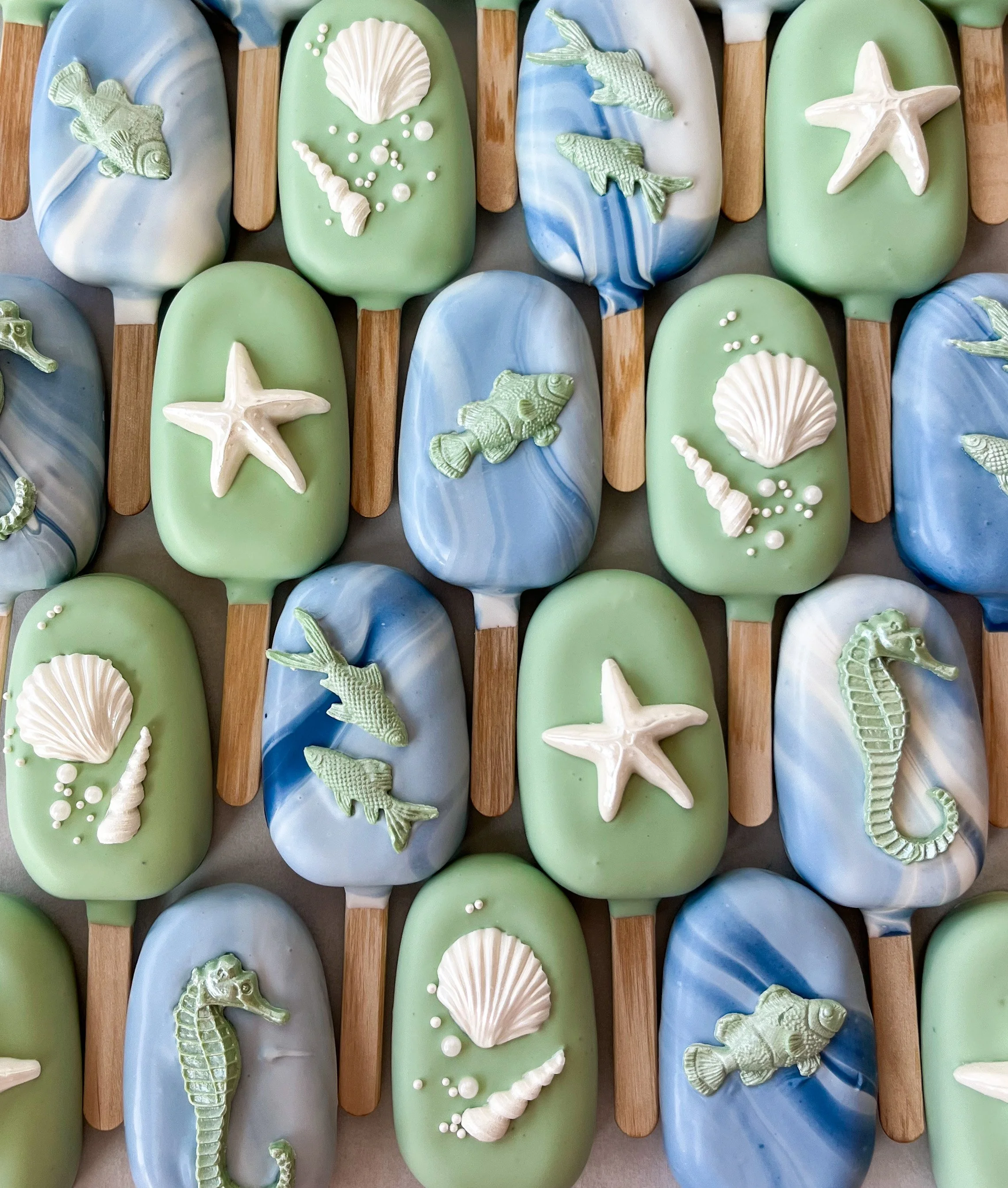 Cakesicles are cake pops in a small popsicle shape (same thing, but way cuter). These are $65 per dozen.